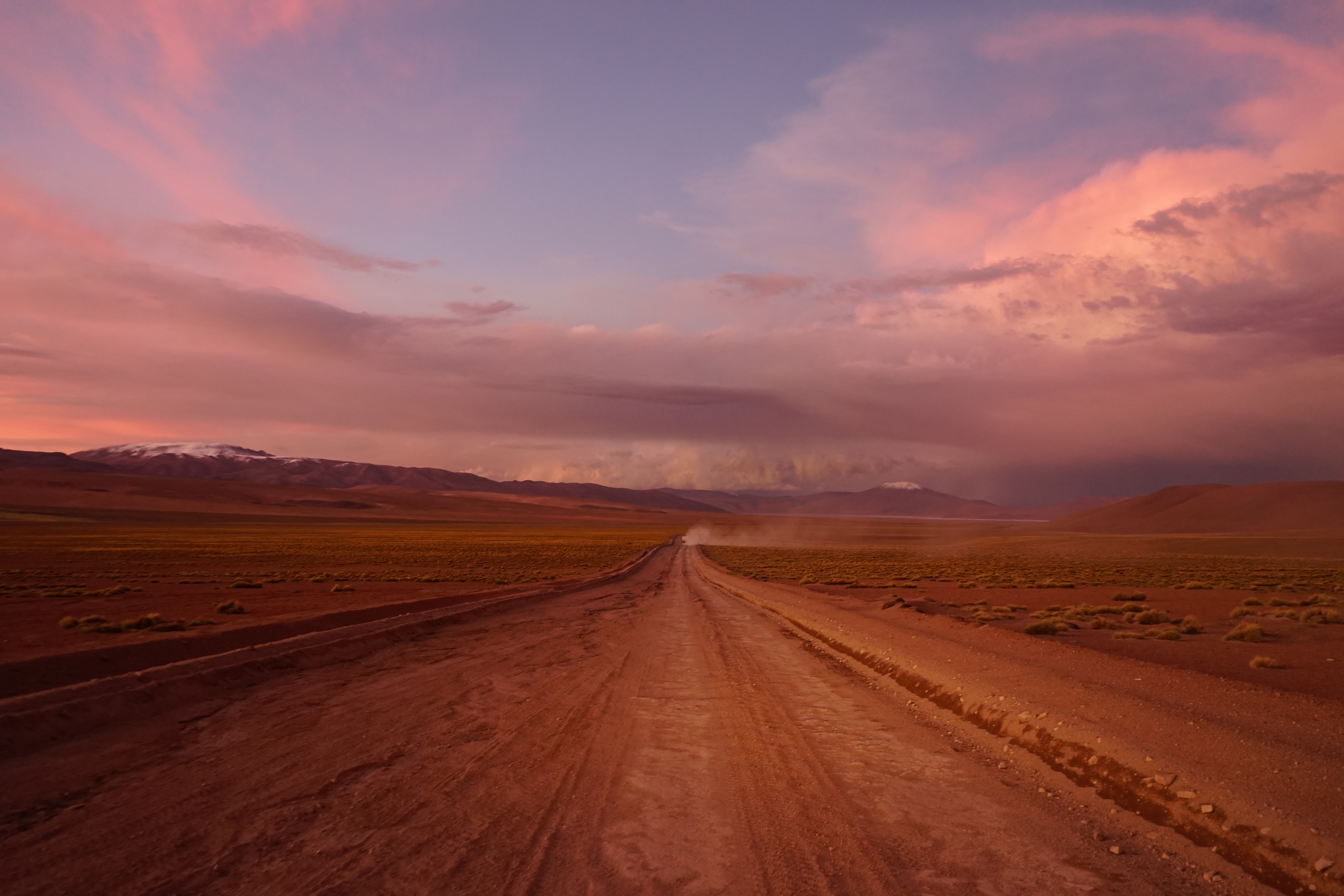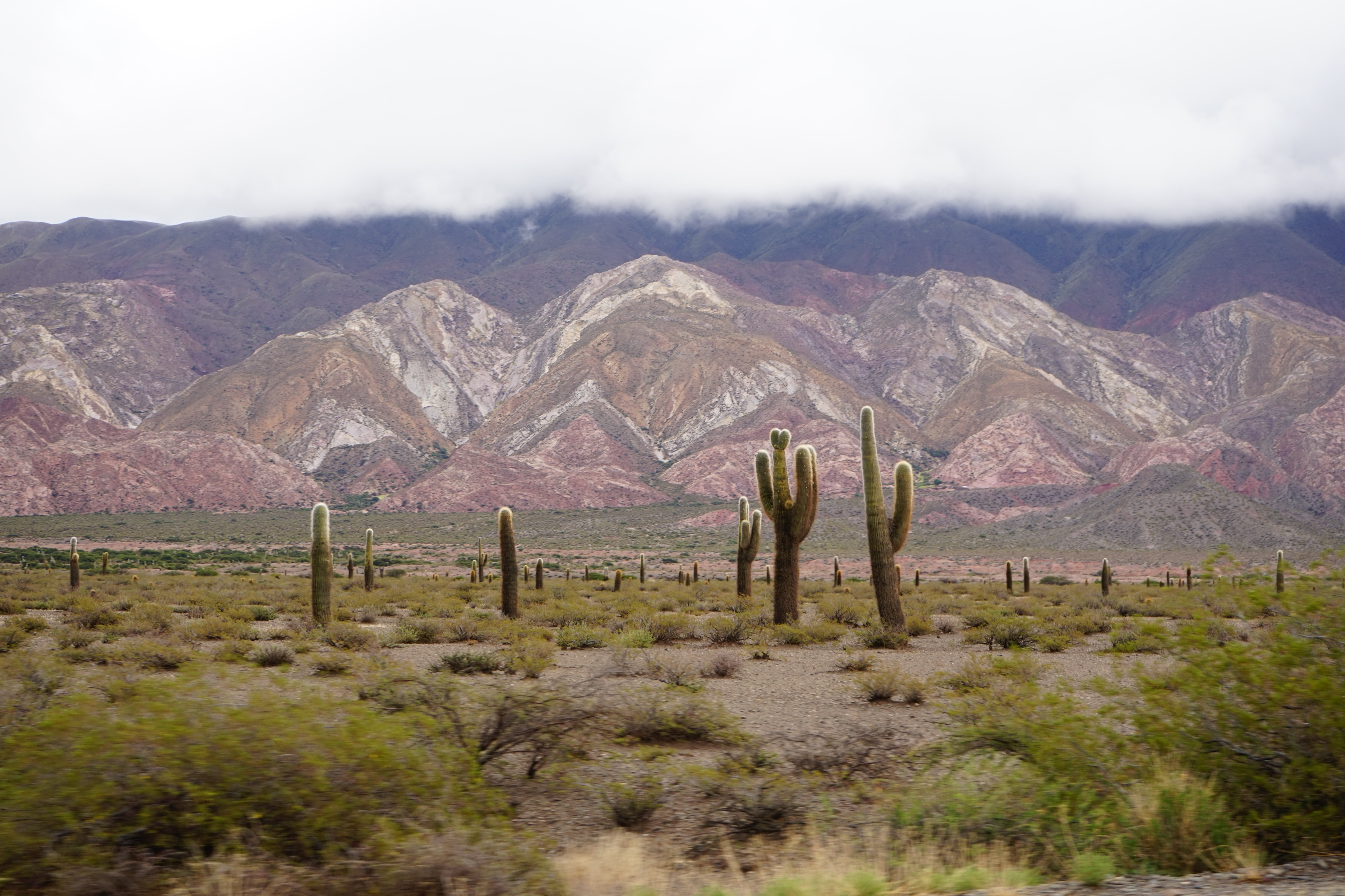 La région regorge de pépites. On parti visiter El Hornocal, une montagne aux 14 couleurs à 4716 m d’altitude. Et aussi le village de Tilcara et les vestiges de son site Inca. Après quelques jours les filles nous quittent et prennent la route pour la Bolivie. Avec Giorgio on se dirige vers le nord du Chili et le désert d’Atacama. Pour cela il nous faut traverser les Andes. Et avec les pluies torrentielles des jours passés plusieurs postes de frontière sont fermés. Ça s’avère être aussi splendide que compliqué. Pour traverser il nous faudra au final 2 jours de voyage, une nuit dans un village perdu dans la Cordillère et plusieurs passages de cols à 5000 m. Mais ce sont les plus belles routes que j’ai eu la chance de fouler jusqu’à présent. On est littéralement seul à sillonner ces hauts plateaux andins, entre des troupeaux de lamas et quelques volcans enneigés culminant à plus de 6000 m d’altitude. C’est là que la voiture prend tout son sens.